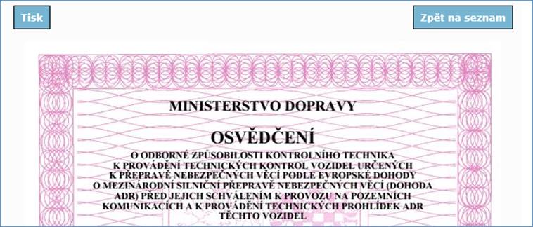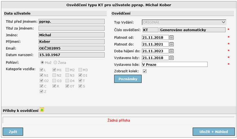 Všechny údaje je nutné zkontrolovat před Tiskem osvědčení. K tomu slouží Náhled před tiskem!!!