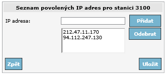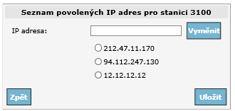 Uživatel smí zadat maximálně 3 IP. Následně smí IP pouze vyměnit. Zrušit ji a dát více smí pouze Správce. IP přidá / změní tlačítkem Uložit.