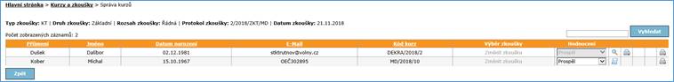 Účastrníci zkoušky – stav Prospěl