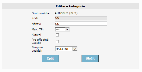 Otevře se formulář pro editaci stávající kategorie vozidla.