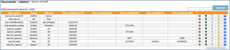 Do sekce přejdete z nabídky domény Agenda postupem HelpDesk ® Uživatelé. Zobrazí se stránka se seznamem uživatelů IS TP.